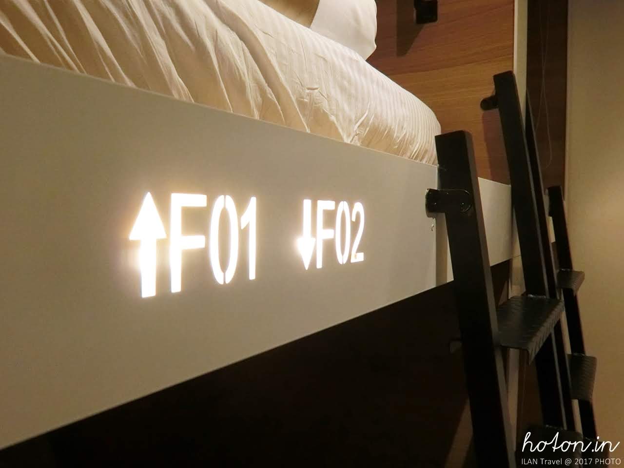床位號碼以小夜燈的方式呈現,讓旅人可以在不打擾他人的狀態下認出自己的床位在哪裡。
